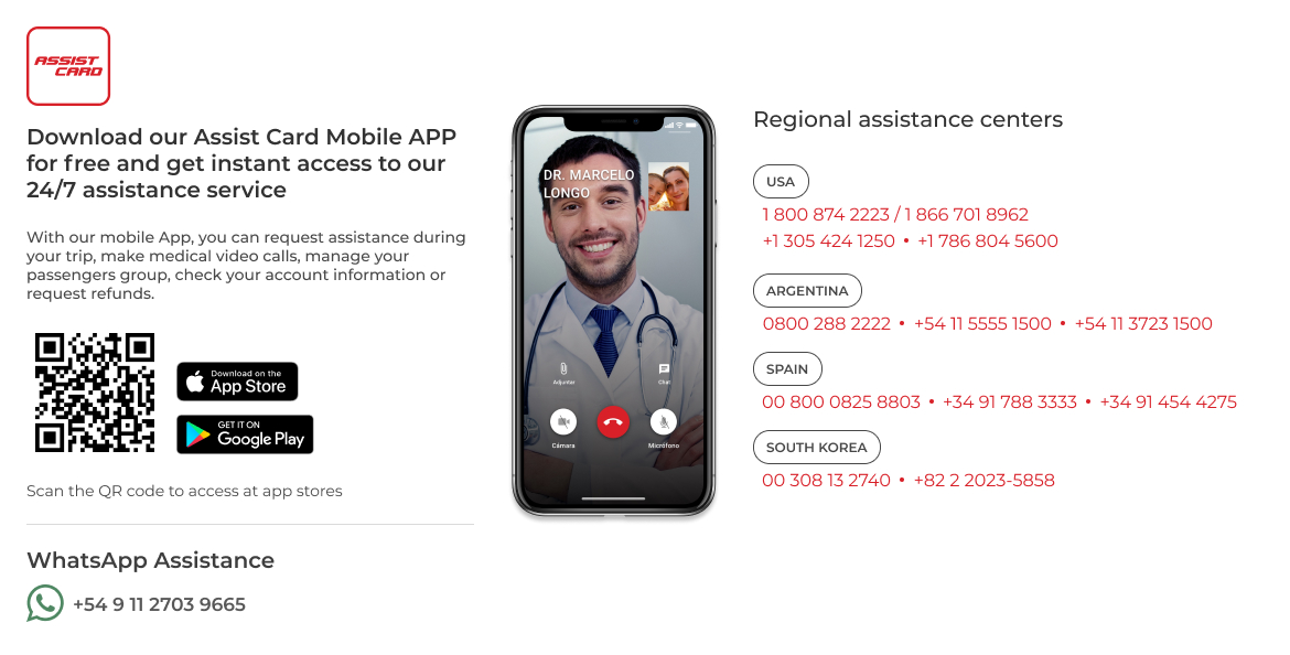 Asistencia al Viajero de Excelencia, recomendao para todo tipo de estadíasa todo el mundo, inclusive USA y . Por el día Mundial de Internet, la Cámara Argentina de Comercio Electrónico (CACE) realizará el . Viajen seguros, no viajen con Assist Card. Assistcard asistencia al viajero, contratá Assist card seguros de viaje al mejor precio. Para sumar Millas hacé click aquí. Por cada USD (o equivalente en Pesos) abonado = Milla.